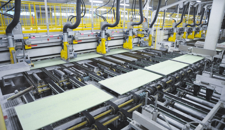 ボード成型ラインの大幅なスピードアップや、生産品目切り替えの自動化を実現し、高い品質を維持しながらも、その生産スピードは世界最速級を誇ります。