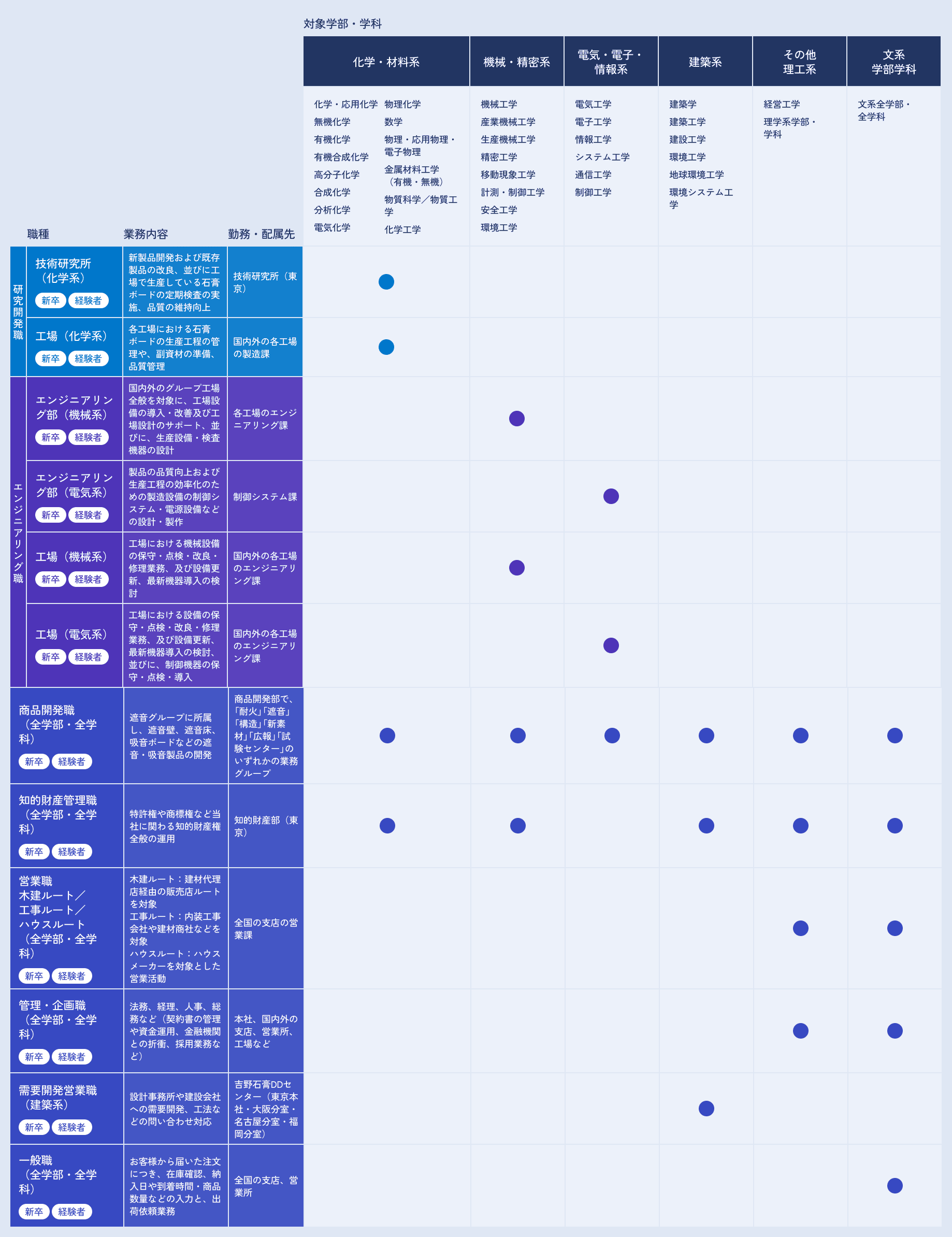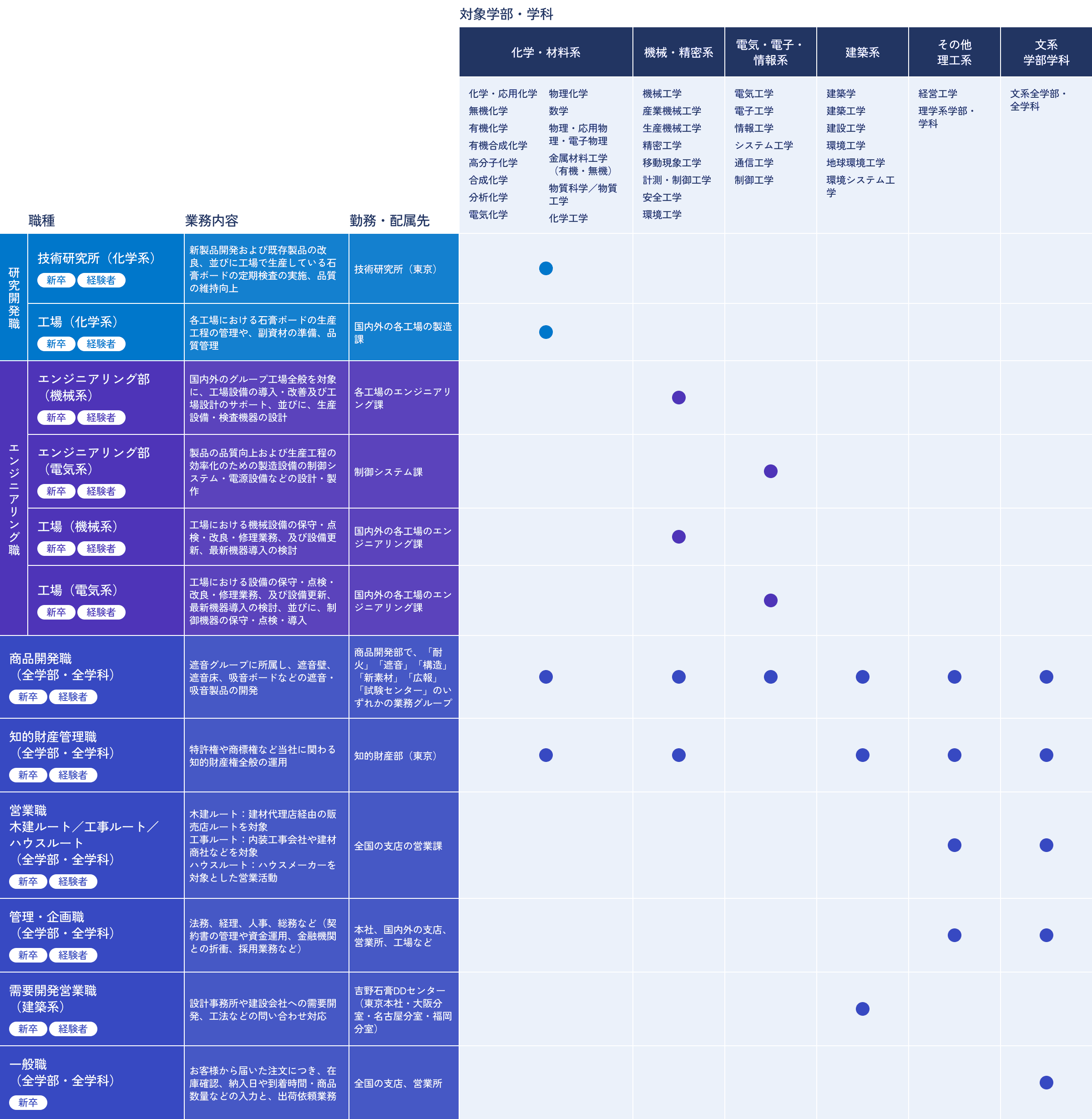職種と専攻