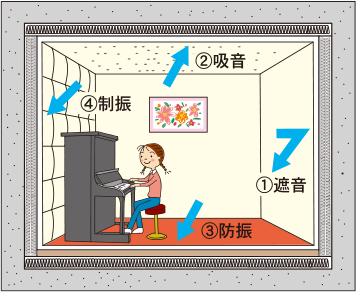 一般に防音とは以下の4つの要素に分けることができます。