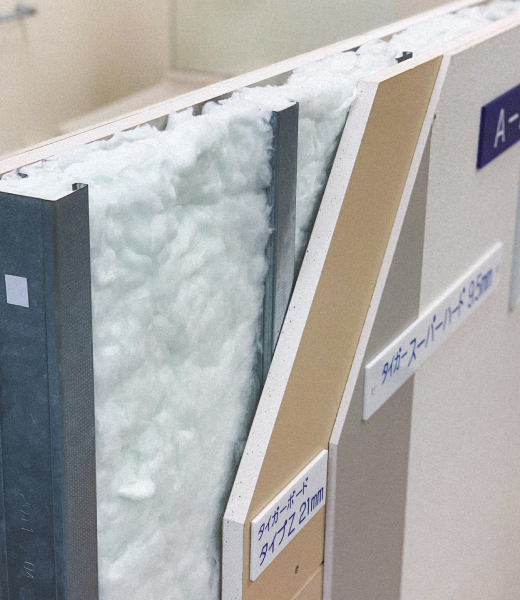 これまでの主力製品の壁材や天井材といった内壁材に加え、床や外壁下地材にも進出しています。遮音性の高いせっこうボードの特徴を生かしアパートやマンションの音漏れに効果的な「タイガー遮音フロアシステム」や、外壁下地材耐力面材「タイガーEXボード」など、建物内外の多彩な製品の開発を進めています。