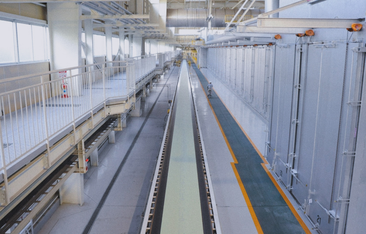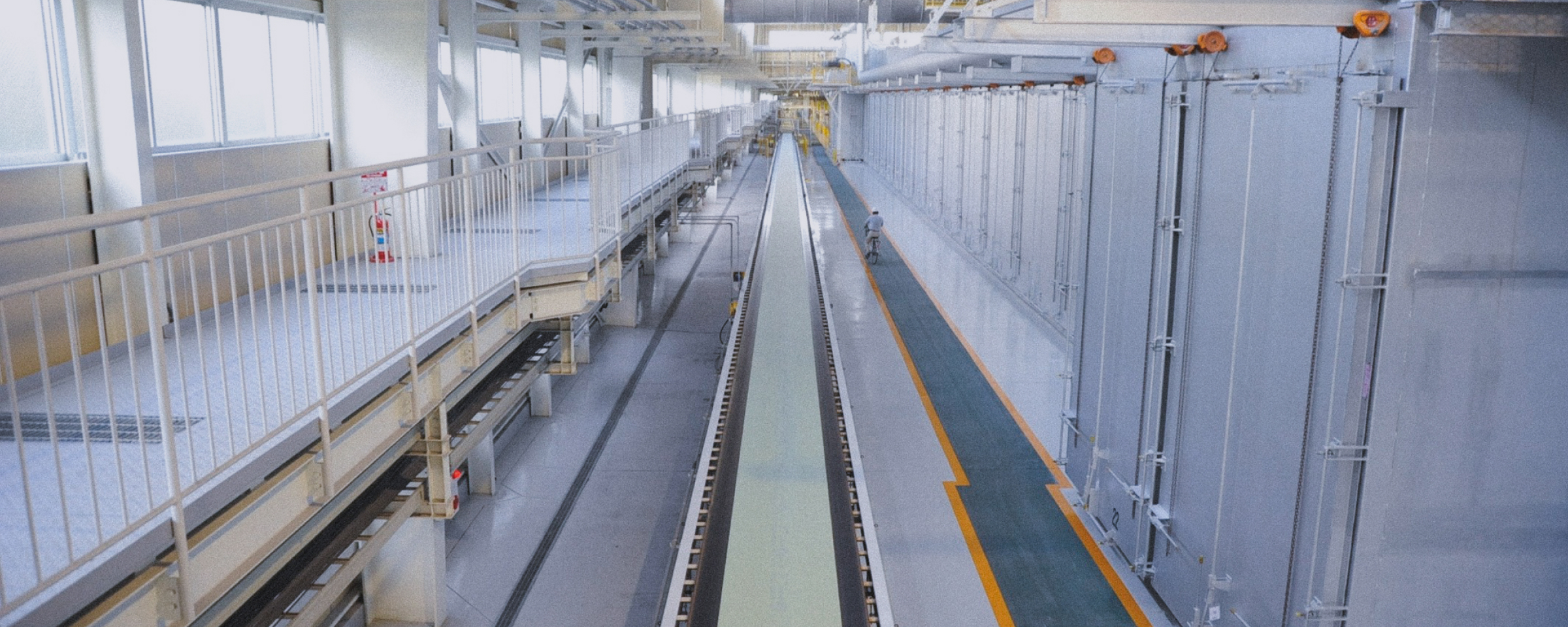 ボード成型ラインの大幅なスピードアップや、生産品目切り替えの自動化を実現し、高い品質を維持しながらも、その生産スピードは世界最速級を誇ります。